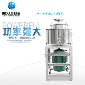 SZ-18型肉丸打漿機,本機裝肉用桶子采用不銹鋼制造,達到衛(wèi)生要求,肉桶外罩和桶底裝有冷卻裝置,確保肉漿新鮮。比手工的打漿更精細,所產肉丸、魚丸彈性好,色澤潔白。