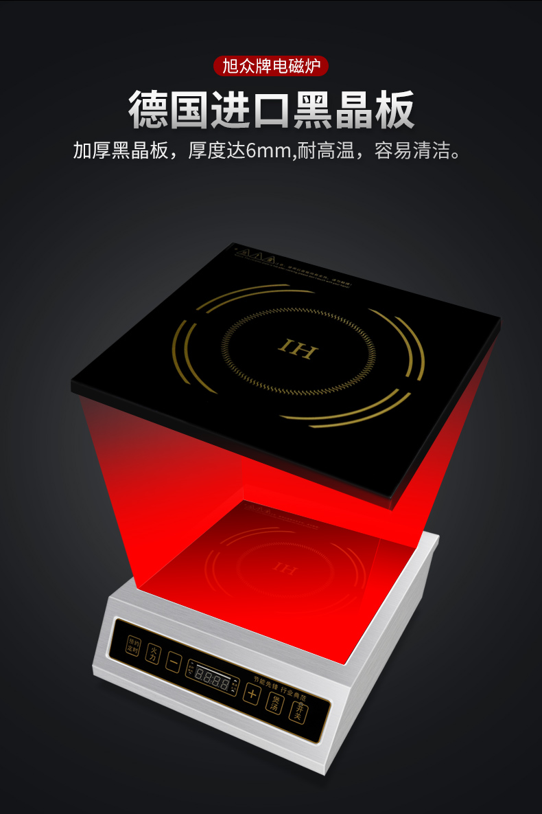 旭眾無明火電磁爐,電磁灶,通過電磁感應(yīng)工作的,所以不必?fù)?dān)心會像煤氣爐那樣因漏氣而引起爆炸或火災(zāi)等嚴(yán)重隱患。是 家用/商用理想選擇 !歡迎廣大餐飲行業(yè)精英來旭眾考察,選擇適合您的高效節(jié)能環(huán)保加熱設(shè)備。