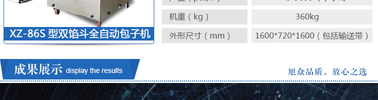 XZ-86S型雙餡斗全自動包子機,可生產(chǎn)各種肉包、肉菜包、菜包、小籠包、湯包、水晶包、圓饅頭、奶黃包、豆沙包、叉燒包、南瓜餅等幾十種包餡制品。適用于賓館、飯店、學校、機關(guān)企業(yè)食堂、饅頭或包子加工廠、早餐工程店及速凍食品廠等單位。可滿足不同客戶群體。免費提供工藝技術(shù)。免費上門培訓(xùn)指導(dǎo)安裝。