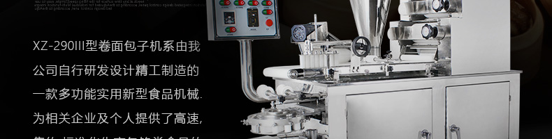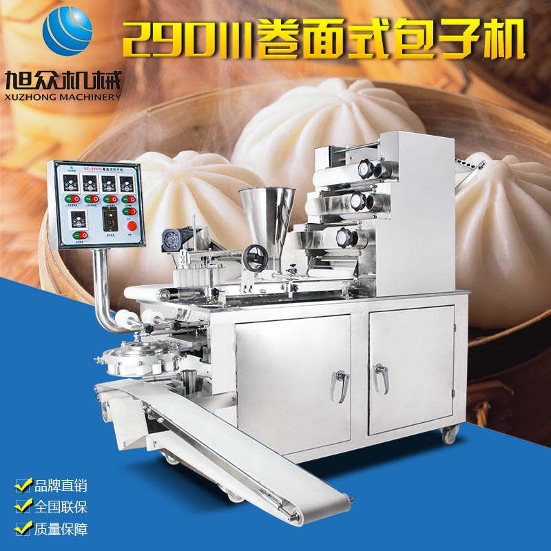 290III卷面式包子機,可生產(chǎn)各種不同餡料的包子、各式包餡食品,如豆沙包、南瓜餅、肉包、小籠包、水晶包等幾十種包餡制品。適用于個體戶、食品廠、學(xué)校等單位食堂??蓾M足不同客戶群體。免費提供工藝技術(shù)。