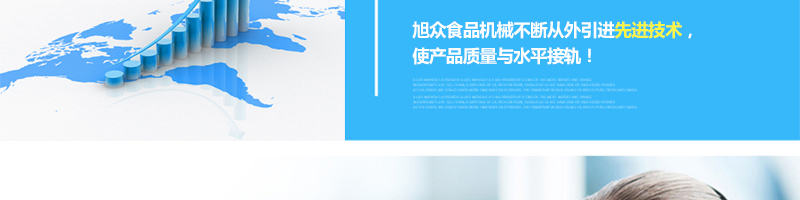 廣州旭眾食品機械有限公司是一家集科研開發(fā),生產(chǎn)設(shè)計,營銷服務(wù)為一體的現(xiàn)代化生產(chǎn)企業(yè)。現(xiàn)代化生產(chǎn)車間,精湛制造技術(shù),所產(chǎn)機械歷經(jīng)市場重重考驗,不斷贏得海內(nèi)外客戶的贊譽。