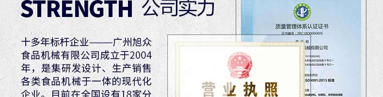廣州旭眾食品機(jī)械有限公司是一家集科研開發(fā),生產(chǎn)設(shè)計(jì),營(yíng)銷服務(wù)為一體的現(xiàn)代化生產(chǎn)企業(yè)。現(xiàn)代化生產(chǎn)車間,精湛制造技術(shù),所產(chǎn)機(jī)械歷經(jīng)市場(chǎng)重重考驗(yàn),不斷贏得海內(nèi)外客戶的贊譽(yù)。
