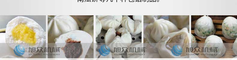 XZ-B812型多功能包子機(jī),它能做的比你想象的多,可生產(chǎn)各種肉包、肉菜包、菜包、小籠包、湯包、生煎包、水晶包、圓饅頭、奶黃包、豆沙包、叉燒包南瓜餅等幾十種包餡制品。