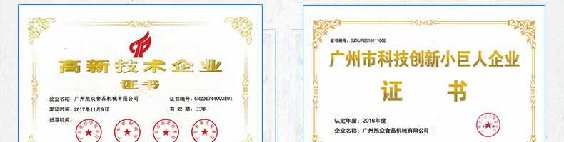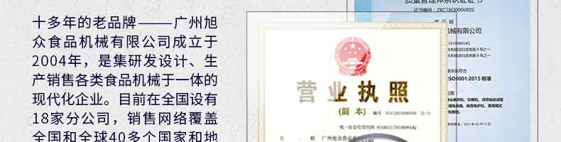 廣州旭眾食品機(jī)械有限公司是一家集科研開發(fā),生產(chǎn)設(shè)計(jì),營銷服務(wù)為一體的現(xiàn)代化生產(chǎn)企業(yè)?,F(xiàn)代化生產(chǎn)車間,精湛制造技術(shù),所產(chǎn)機(jī)械歷經(jīng)市場(chǎng)重重考驗(yàn),不斷贏得海內(nèi)外客戶的贊譽(yù)。