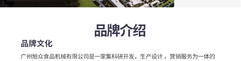 廣州旭眾食品機(jī)械有限公司是一家集科研開(kāi)發(fā),生產(chǎn)設(shè)計(jì),營(yíng)銷(xiāo)服務(wù)為一體的現(xiàn)代化生產(chǎn)企業(yè)?,F(xiàn)代化生產(chǎn)車(chē)間,精湛制造技術(shù),所產(chǎn)機(jī)械歷經(jīng)市場(chǎng)重重考驗(yàn),不斷贏得海內(nèi)外客戶的贊譽(yù)。
