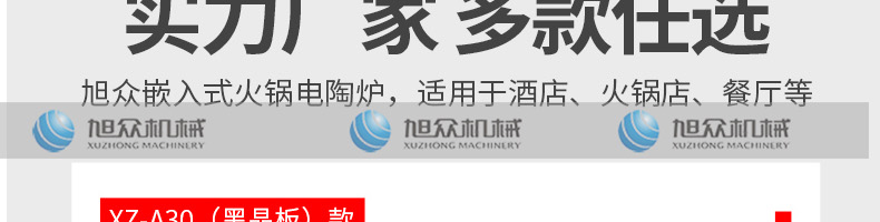 嵌入式電陶爐XZ-A30,實力廠家·采用高品質(zhì)零配件。廠家直銷,售后無憂。廣州旭眾食品機械有限公司是集研發(fā)設(shè)計、生產(chǎn)銷售于一體的現(xiàn)代化企業(yè)。一站式購機,無中間差價。