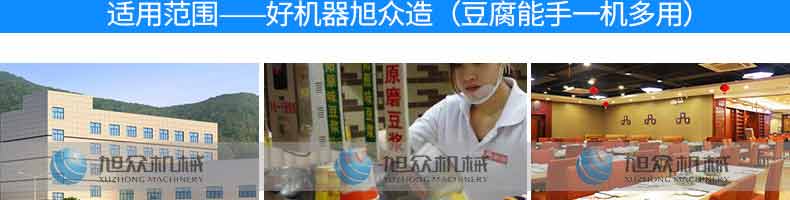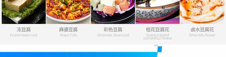 XZ-60智能豆腐機,一機多用:可生產豆腐系列產品:單色(嫩,老)豆腐、多彩豆 腐、單色豆腐皮、多色豆腐皮、彩色豆腐干、豆?jié){、豆花等豆制品制作,還可以與其他設備和工藝配套生 產更多的豆制品。