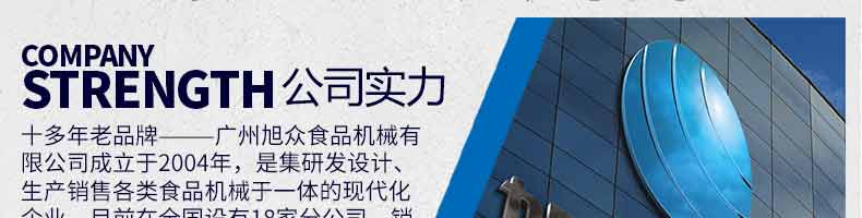 廣州旭眾食品機械有限公司是一家集科研開發(fā),生產設計,營銷服務為一體的現(xiàn)代化生產企業(yè)。現(xiàn)代化生產車間,精湛制造技術,所產機械歷經市場重重考驗,不斷贏得海內外客戶的贊譽。