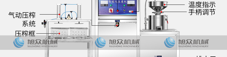 XZ-200 智能化豆腐機,蒸汽煮熟、長久保鮮。通過水蒸氣高溫加熱煮熟,保持原有光澤與鮮美。人性化設(shè)計操作簡單,多項監(jiān)測機械的安全性。