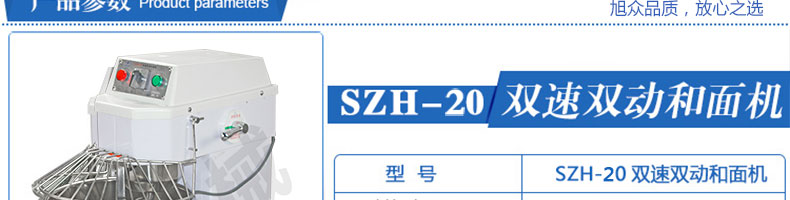 SZH-20型雙速雙動和面機,本機適合攪拌各種面包、包子、饅頭、湯圓、披薩餅面團,專業(yè)設計避免面團過分升溫并確保面團含氧量。過載、缺相保護裝置,防護罩安全連動裝置。