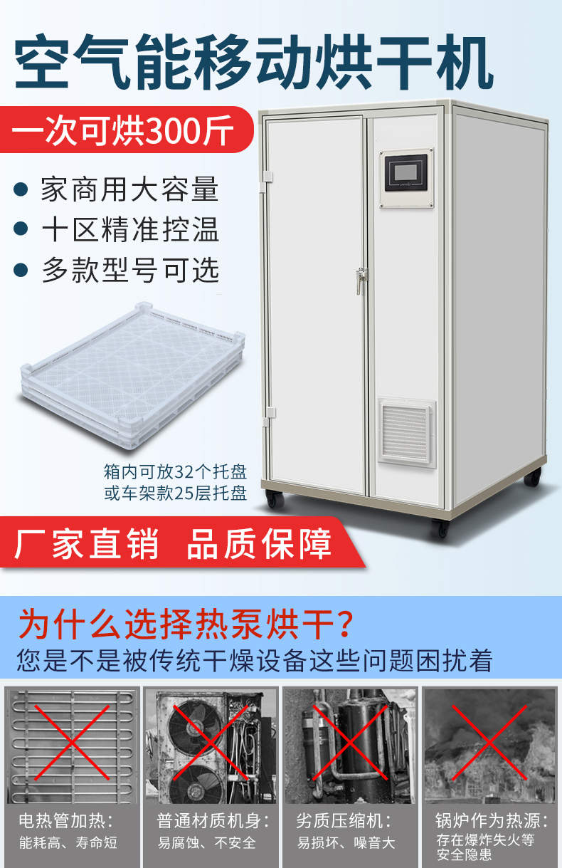 烘干抽濕一體機(jī)(帶烘房),空氣能移動烘干機(jī),一次可烘300斤、家商用大容量、十區(qū)精準(zhǔn)控溫、多款型號可選。智能烘干時(shí)代出類拔萃的新體驗(yàn)