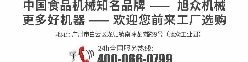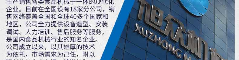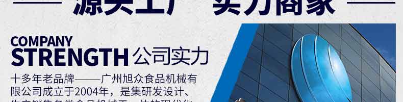 廣州旭眾食品機械有限公司是一家集科研開發(fā),生產(chǎn)設(shè)計,營銷服務(wù)為一體的現(xiàn)代化生產(chǎn)企業(yè)?,F(xiàn)代化生產(chǎn)車間,精湛制造技術(shù),所產(chǎn)機械歷經(jīng)市場重重考驗,不斷贏得海內(nèi)外客戶的贊譽。