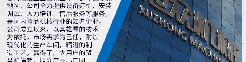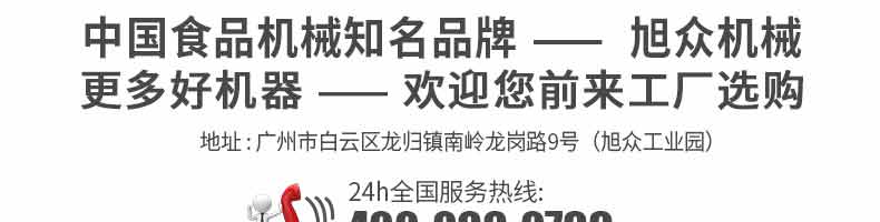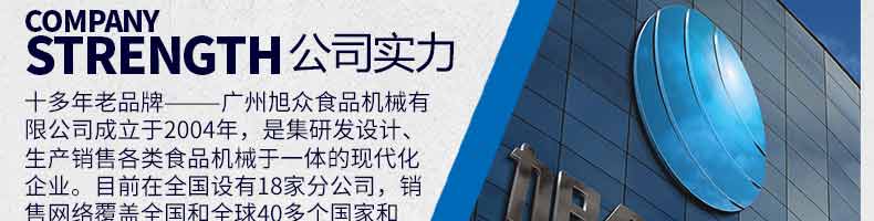 廣州旭眾食品機(jī)械有限公司是一家集科研開發(fā),生產(chǎn)設(shè)計,營銷服務(wù)為一體的現(xiàn)代化生產(chǎn)企業(yè)?,F(xiàn)代化生產(chǎn)車間,精湛制造技術(shù),所產(chǎn)機(jī)械歷經(jīng)市場重重考驗,不斷贏得海內(nèi)外客戶的贊譽(yù)。