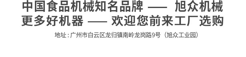 廣州旭眾食品機(jī)械有限公司是一家集科研開(kāi)發(fā),生產(chǎn)設(shè)計(jì),營(yíng)銷服務(wù)為一體的現(xiàn)代化生產(chǎn)企業(yè)?,F(xiàn)代化生產(chǎn)車間,精湛制造技術(shù),所產(chǎn)機(jī)械歷經(jīng)市場(chǎng)重重考驗(yàn),不斷贏得海內(nèi)外客戶的贊譽(yù)。