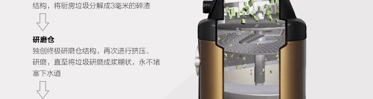 ACLQ56-廚房垃圾處理器,該機器是靠內部結構、零件組合達到處理垃圾的效果,通過碾、壓、擠、磨等系統(tǒng)的處理,在十幾秒內安全將食物垃圾處理成小于3毫米的顆粒,隨著水流排入下水道,使用十分安全。