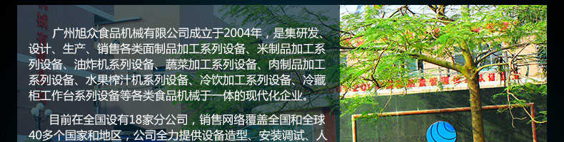 廣州旭眾食品機械有限公司是一家集科研開發(fā),生產(chǎn)設(shè)計,營銷服務為一體的現(xiàn)代化生產(chǎn)企業(yè)?,F(xiàn)代化生產(chǎn)車間,精湛制造技術(shù),所產(chǎn)機械歷經(jīng)市場重重考驗,不斷贏得海內(nèi)外客戶的贊譽。