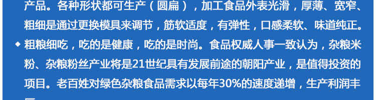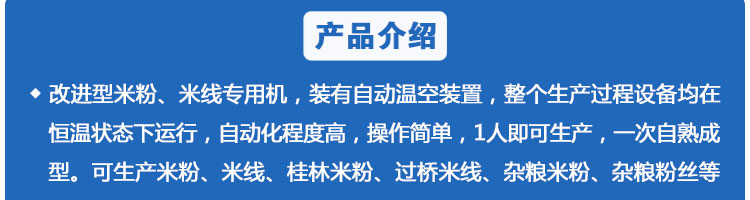 SZ-350多功能米粉機(jī),生產(chǎn)多樣性可生產(chǎn)米粉、米線(xiàn)、粉絲、粉條、、年糕、玉米面條、各種雜糧粉絲、各種面條、雜糧面條、彩色面條以及以紅薯、玉米、大豆、蠶豆等制成淀粉為原料的等多種食品而且每種食品厚薄、粗細(xì)等規(guī)格可根據(jù)需要任意調(diào)整。