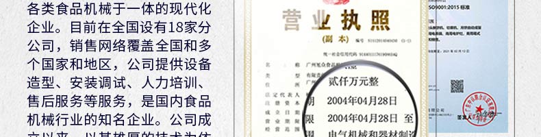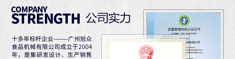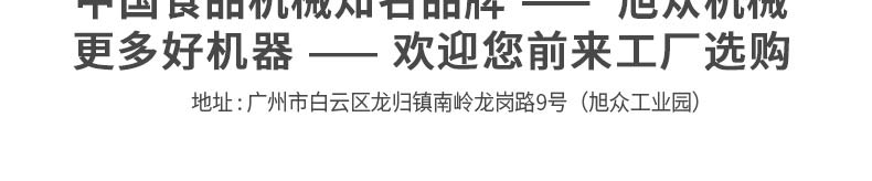 廣州旭眾食品機械有限公司是一家集科研開發(fā),生產設計,營銷服務為一體的現代化生產企業(yè)?,F代化生產車間,精湛制造技術,所產機械歷經市場重重考驗,不斷贏得海內外客戶的贊譽。