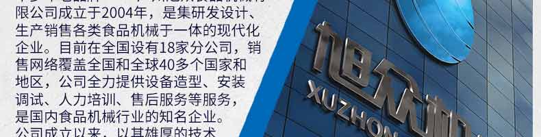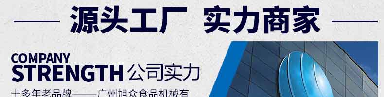 廣州旭眾食品機(jī)械有限公司是一家集科研開發(fā),生產(chǎn)設(shè)計,營銷服務(wù)為一體的現(xiàn)代化生產(chǎn)企業(yè)?,F(xiàn)代化生產(chǎn)車間,精湛制造技術(shù),所產(chǎn)機(jī)械歷經(jīng)市場重重考驗(yàn),不斷贏得海內(nèi)外客戶的贊譽(yù)。