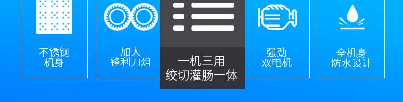 XZ-7絞切機,多功能一體機,切肉絞肉/灌腸/切菜。加厚不銹鋼優(yōu)質(zhì)機身堅固耐用,不易生銹,安全衛(wèi)生易清洗。