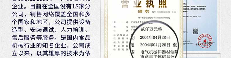 廣州旭眾食品機(jī)械有限公司是一家集科研開發(fā),生產(chǎn)設(shè)計(jì),營銷服務(wù)為一體的現(xiàn)代化生產(chǎn)企業(yè)?,F(xiàn)代化生產(chǎn)車間,精湛制造技術(shù),所產(chǎn)機(jī)械歷經(jīng)市場重重考驗(yàn),不斷贏得海內(nèi)外客戶的贊譽(yù)。