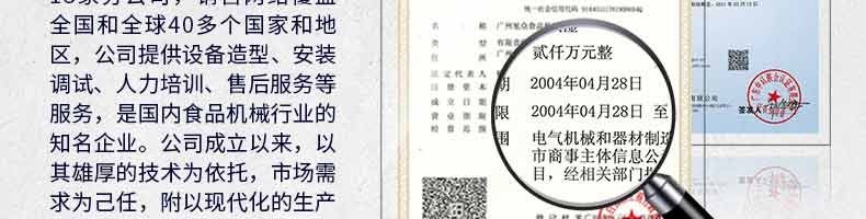 廣州旭眾食品機械有限公司是一家集科研開發(fā),生產(chǎn)設計,營銷服務為一體的現(xiàn)代化生產(chǎn)企業(yè)。現(xiàn)代化生產(chǎn)車間,精湛制造技術,所產(chǎn)機械歷經(jīng)市場重重考驗,不斷贏得海內(nèi)外客戶的贊譽。