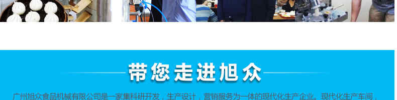 廣州旭眾食品機械有限公司是一家集科研開發(fā),生產(chǎn)設(shè)計,營銷服務(wù)為一體的現(xiàn)代化生產(chǎn)企業(yè)?,F(xiàn)代化生產(chǎn)車間,精湛制造技術(shù),所產(chǎn)機械歷經(jīng)市場重重考驗,不斷贏得海內(nèi)外客戶的贊譽。