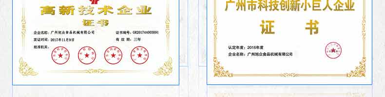 廣州旭眾食品機械有限公司是一家集科研開發(fā),生產(chǎn)設(shè)計,營銷服務(wù)為一體的現(xiàn)代化生產(chǎn)企業(yè)?,F(xiàn)代化生產(chǎn)車間,精湛制造技術(shù),所產(chǎn)機械歷經(jīng)市場重重考驗,不斷贏得海內(nèi)外客戶的贊譽。