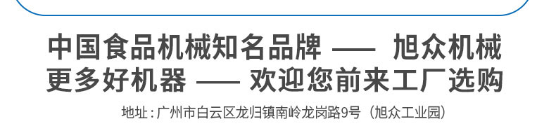 廣州旭眾食品機械有限公司是一家集科研開發(fā),生產(chǎn)設(shè)計,營銷服務(wù)為一體的現(xiàn)代化生產(chǎn)企業(yè)?,F(xiàn)代化生產(chǎn)車間,精湛制造技術(shù),所產(chǎn)機械歷經(jīng)市場重重考驗,不斷贏得海內(nèi)外客戶的贊譽。