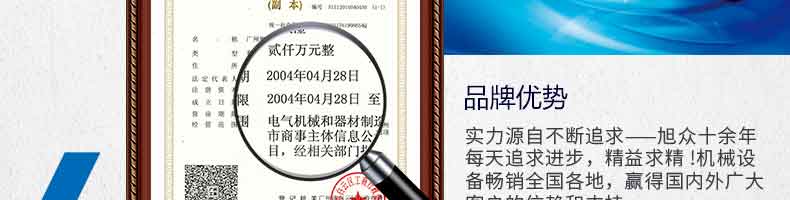 廣州旭眾食品機械有限公司是一家集科研開發(fā),生產(chǎn)設(shè)計,營銷服務(wù)為一體的現(xiàn)代化生產(chǎn)企業(yè)?,F(xiàn)代化生產(chǎn)車間,精湛制造技術(shù),所產(chǎn)機械歷經(jīng)市場重重考驗,不斷贏得海內(nèi)外客戶的贊譽。