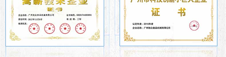 廣州旭眾食品機械有限公司是一家集科研開發(fā),生產(chǎn)設(shè)計,營銷服務(wù)為一體的現(xiàn)代化生產(chǎn)企業(yè)?,F(xiàn)代化生產(chǎn)車間,精湛制造技術(shù),所產(chǎn)機械歷經(jīng)市場重重考驗,不斷贏得海內(nèi)外客戶的贊譽。
